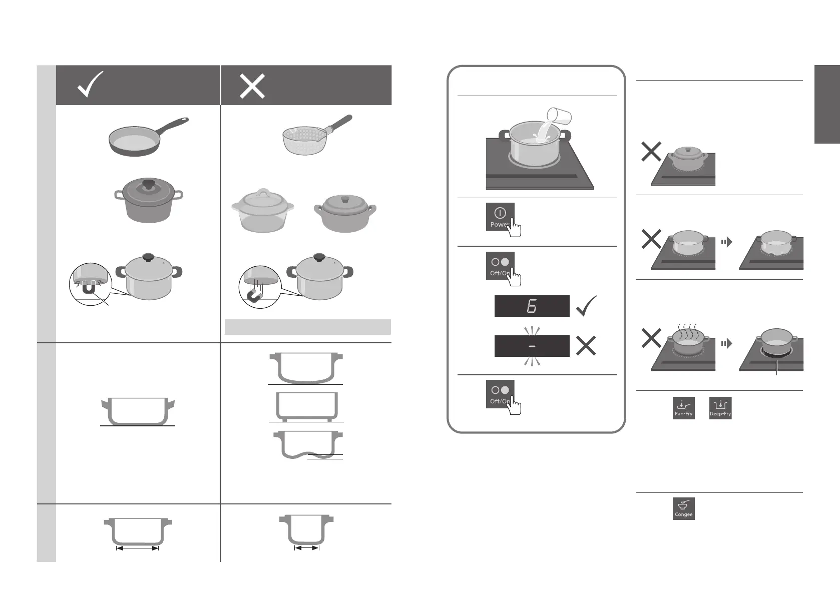 bottom shape and size of the cookware: