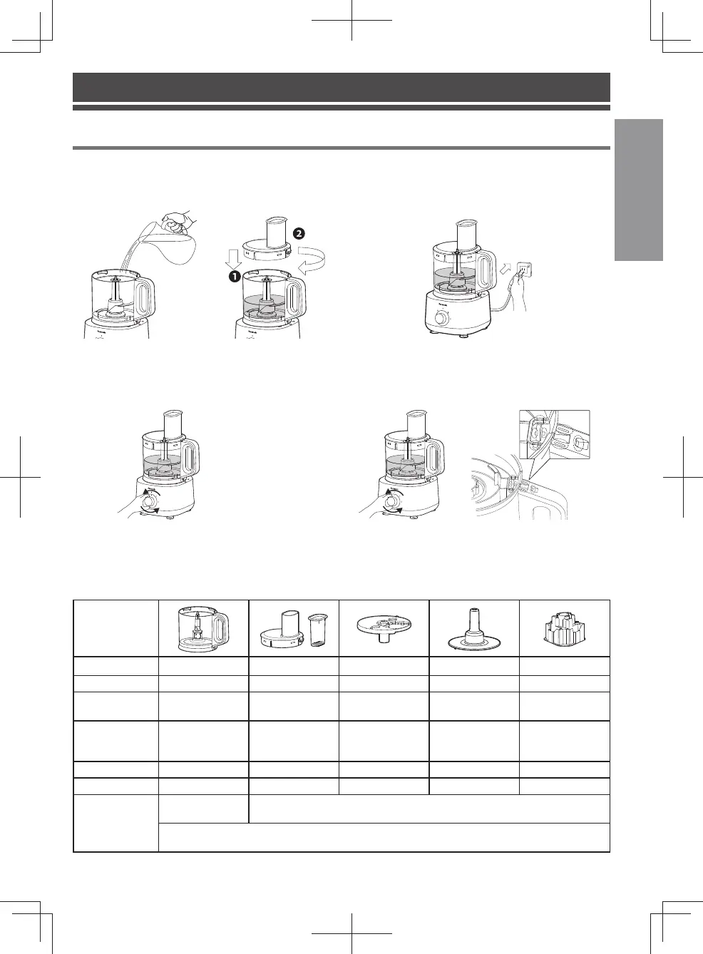 The pre-wash enables easier cleaning. It can be used for the knife blade. To pre-wash, simply follow the steps below.