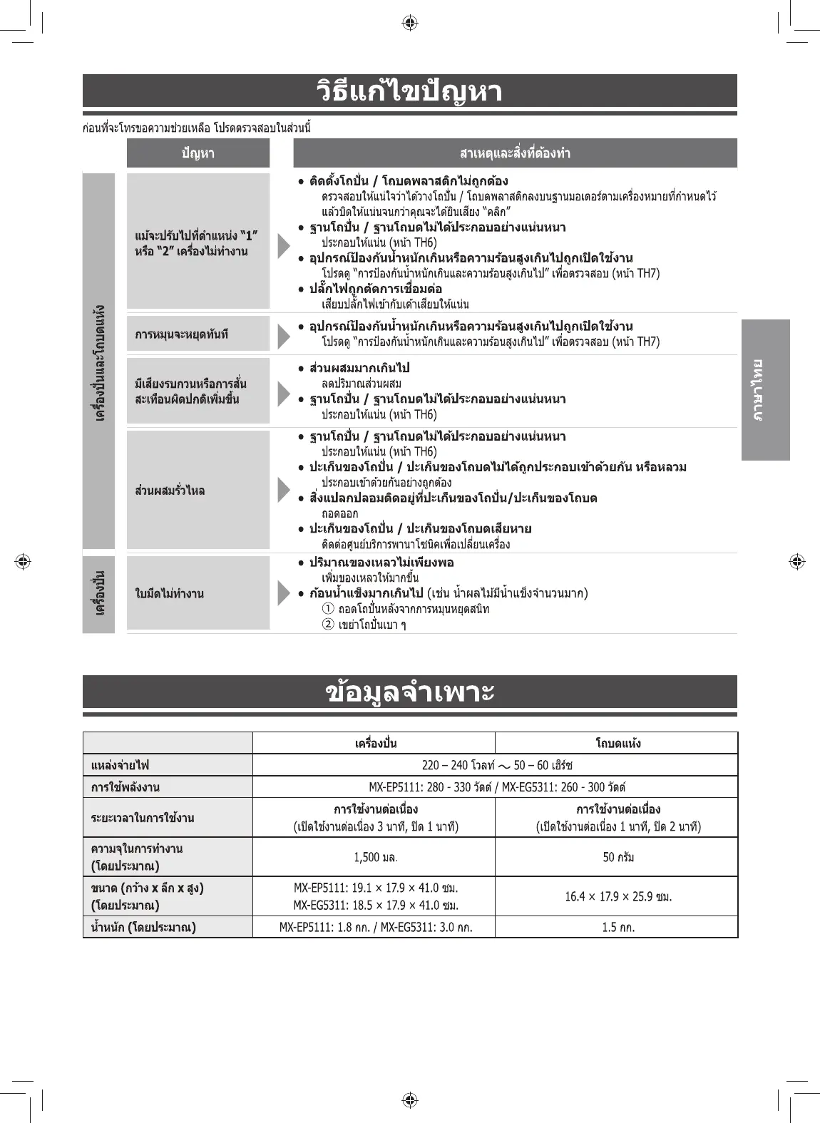 Bekijk gratis de handleiding van Panasonic MX-EG5311, stel vragen en lees de antwoorden op veelvoorkomende problemen, of gebruik onze assistent om sneller informatie in de handleiding te vinden of uitleg te krijgen over specifieke functies.