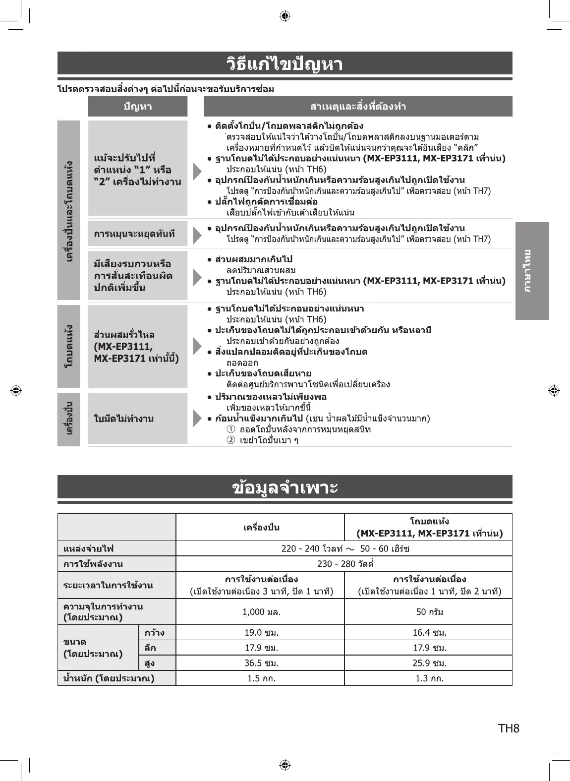 Bekijk gratis de handleiding van Panasonic MX-EP3111, stel vragen en lees de antwoorden op veelvoorkomende problemen, of gebruik onze assistent om sneller informatie in de handleiding te vinden of uitleg te krijgen over specifieke functies.