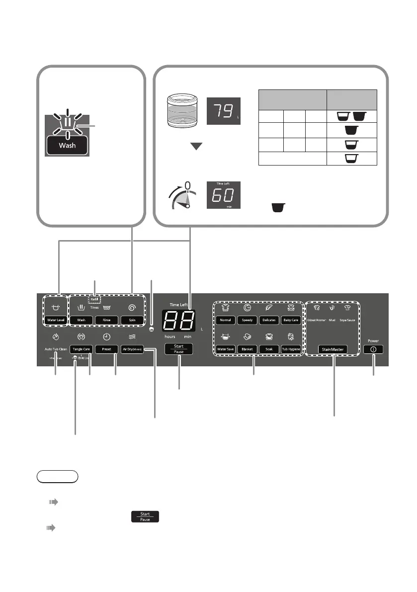 z The wash process setting of the “Stain Master” and “Soak” programs cannot