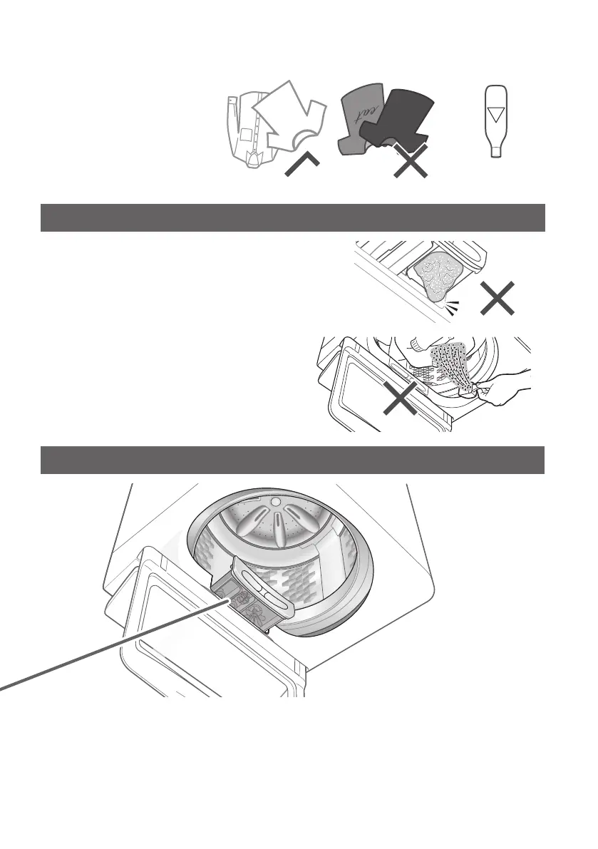 (untuk peluntur serbuk) atau dalam petak detergen cecair (untuk peluntur cecair).