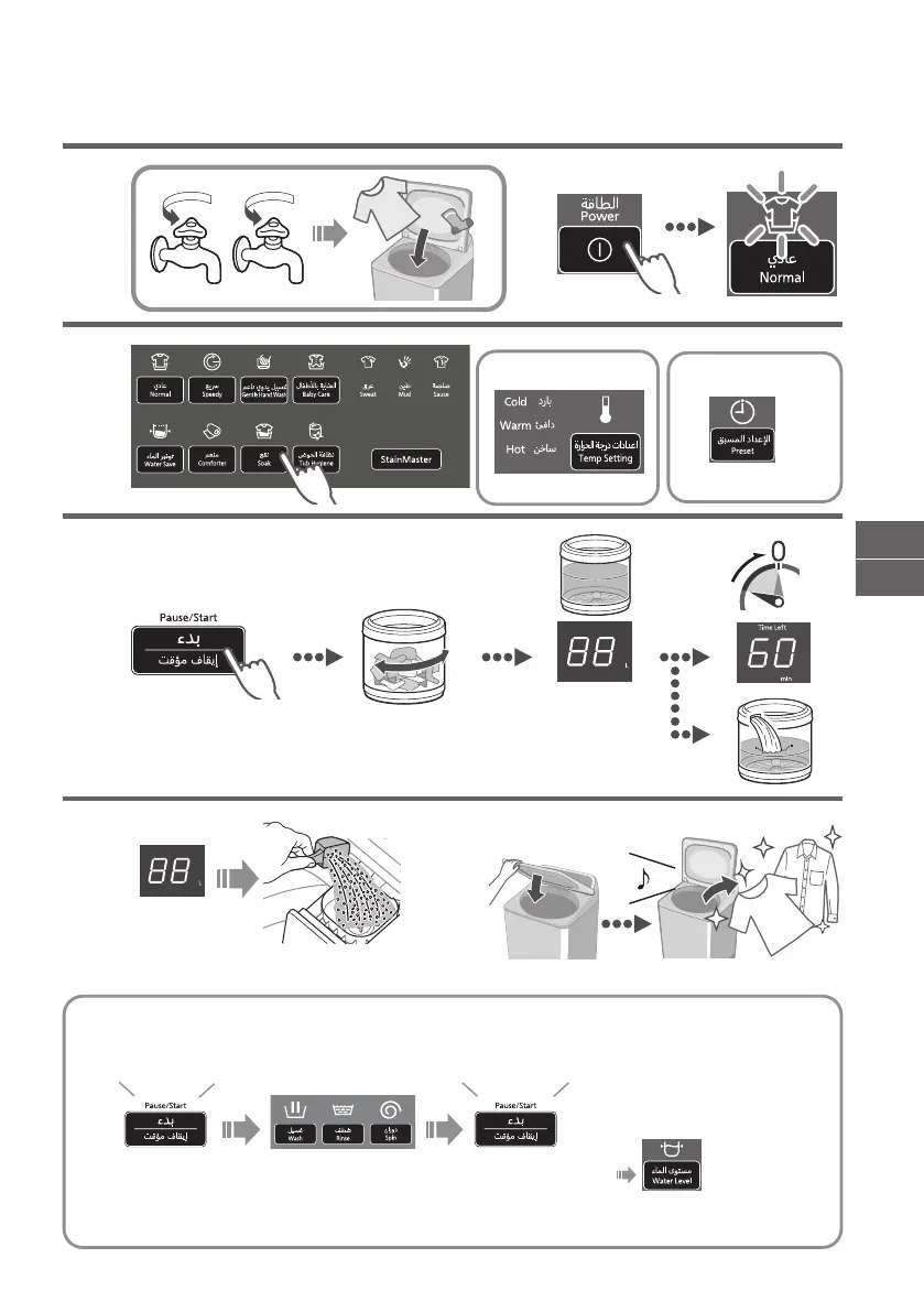 z To check or change the water level (while washing).