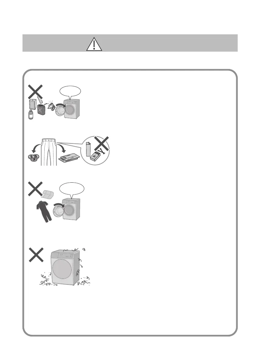 z Không sấy các vật dụng chưa giặt trong thiết bị này.