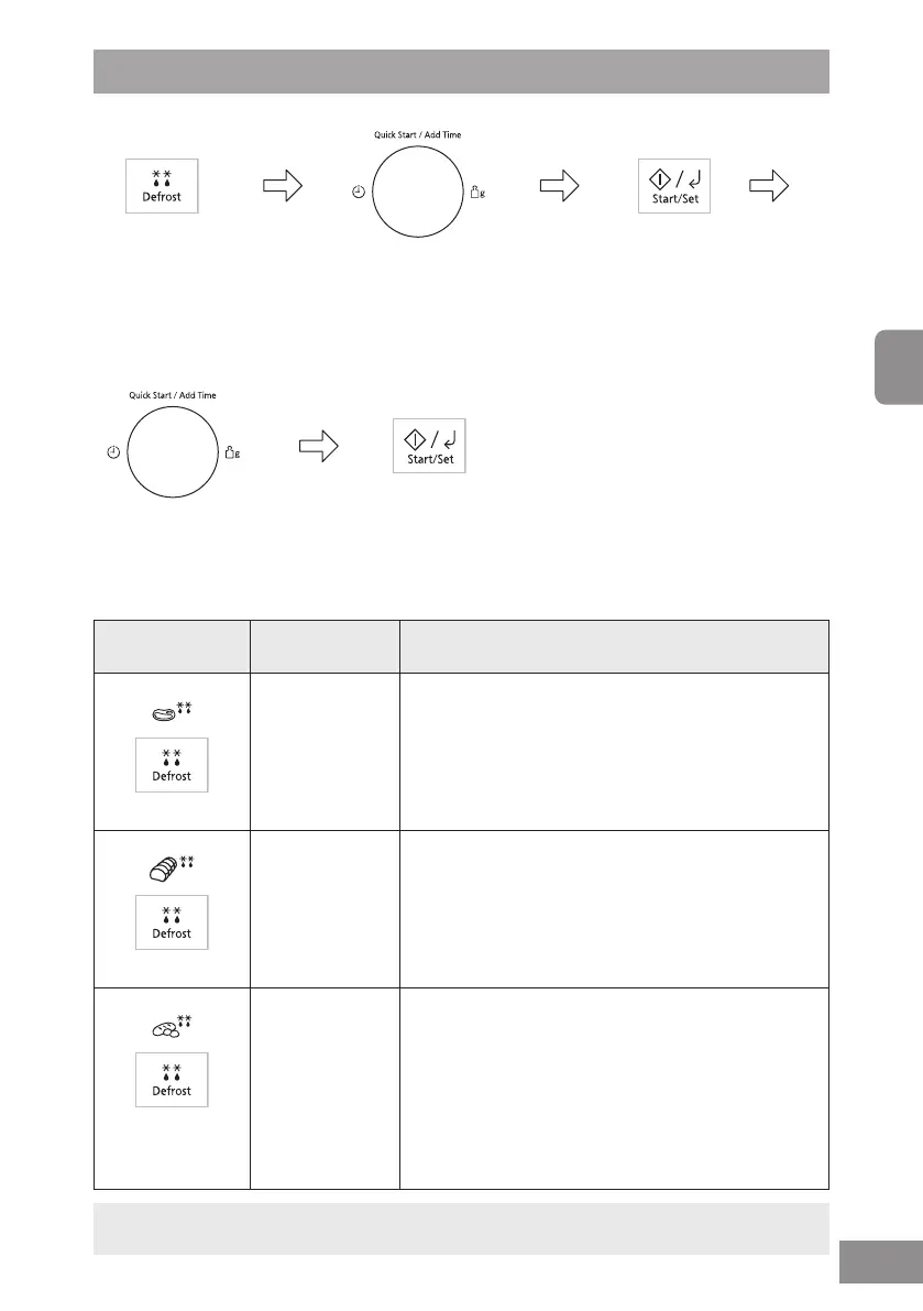 Vedere pag. 15 per istruzioni per lo scongelamento dei cibi.