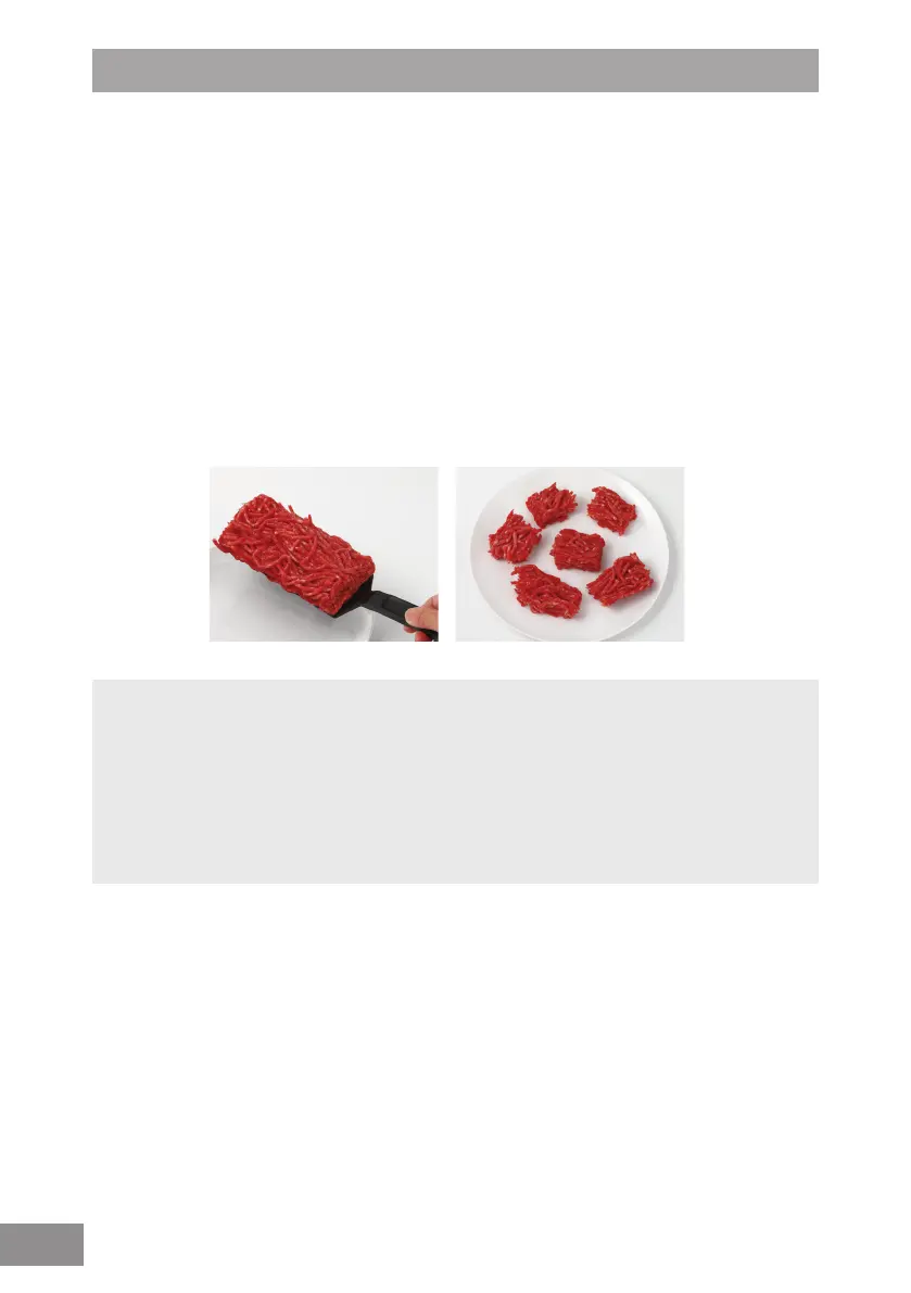 4. La carne picada/chuletas/pollo en porciones debe partirse o separarse tan pronto como sea
