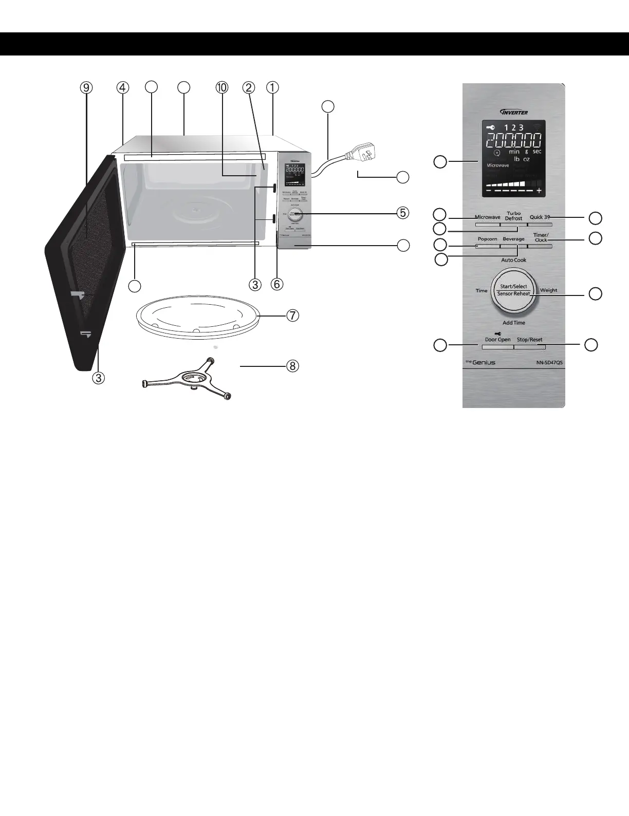 Bekijk gratis de handleiding van Panasonic NN-SD47QS, stel vragen en lees de antwoorden op veelvoorkomende problemen, of gebruik onze assistent om sneller informatie in de handleiding te vinden of uitleg te krijgen over specifieke functies.