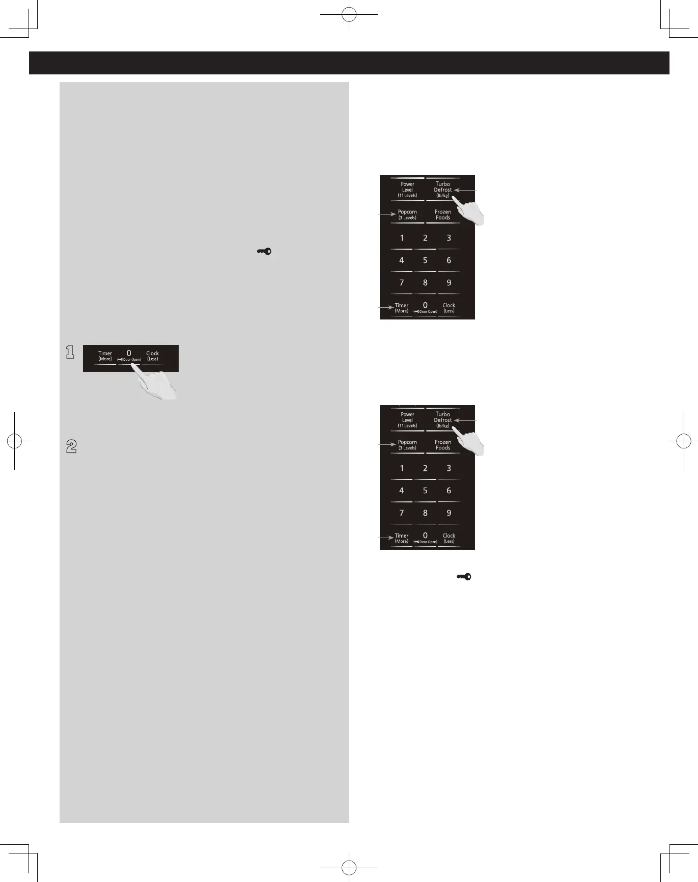 Press Turbo Defrost - Timer (More) - Popcorn in sequence,