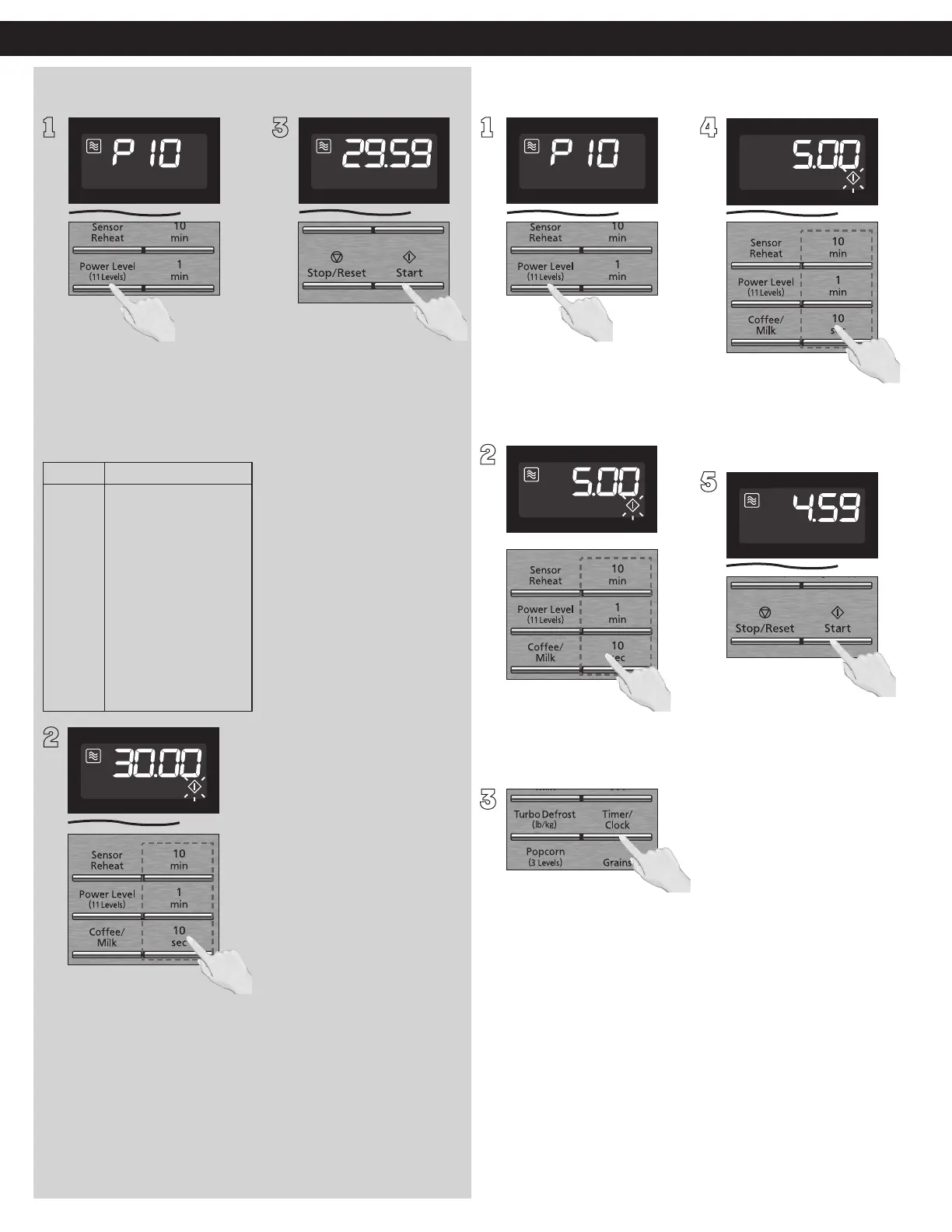 Press Timer/Clock once.