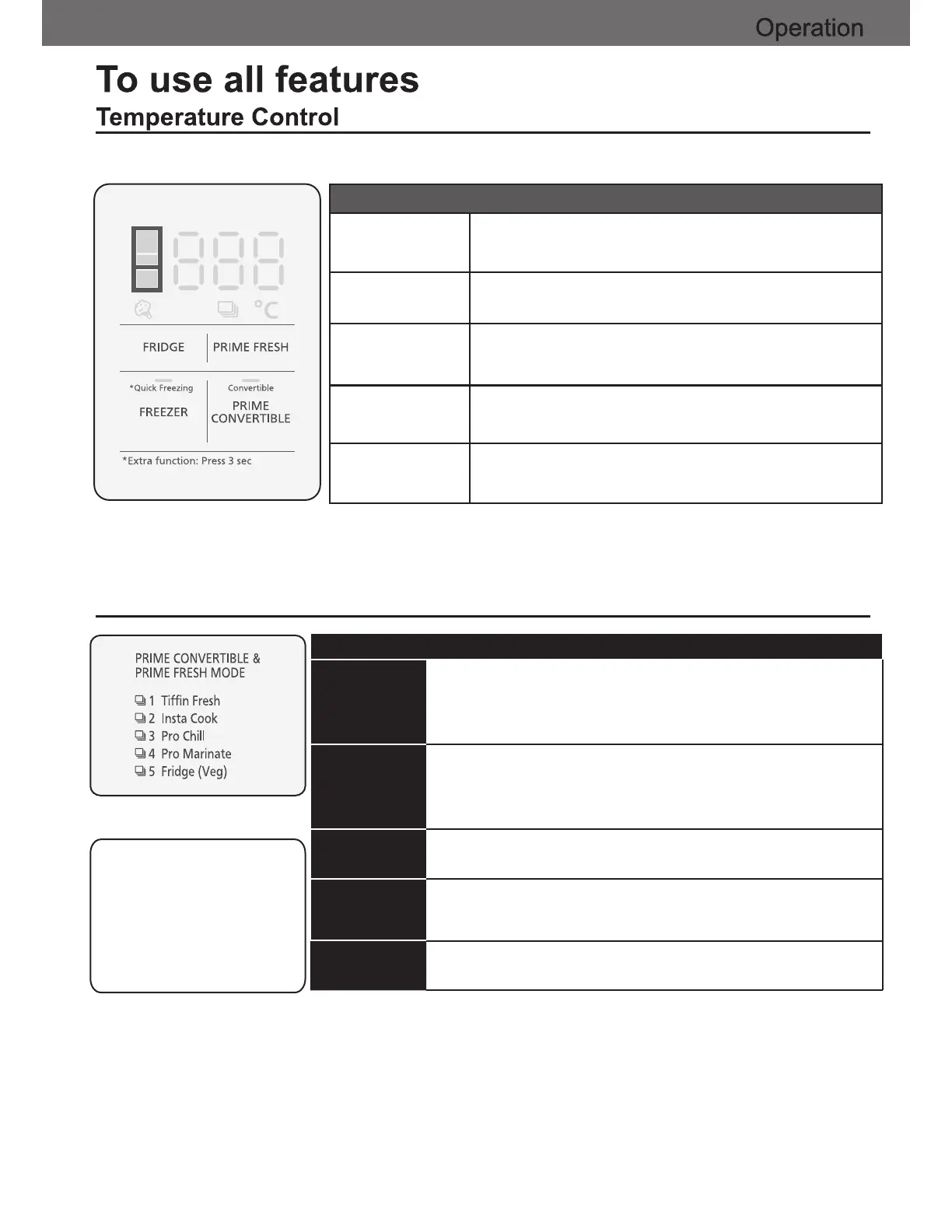 Quick Freezing function will operate for certain period of time after that it will reset previous setting.
