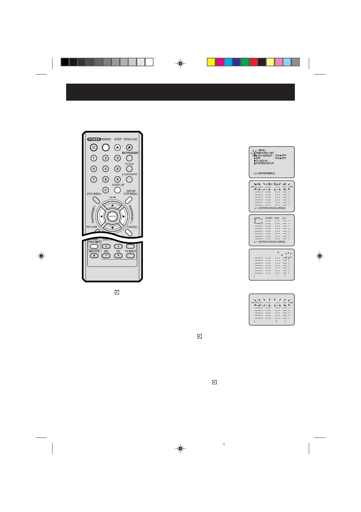 VCR, press and hold PROG TIMER for