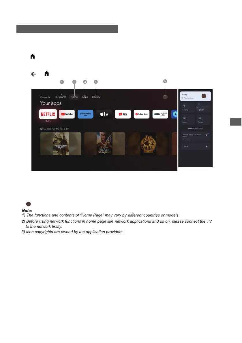 5. : You can select Settings,Inputs,Picture and view notifications.