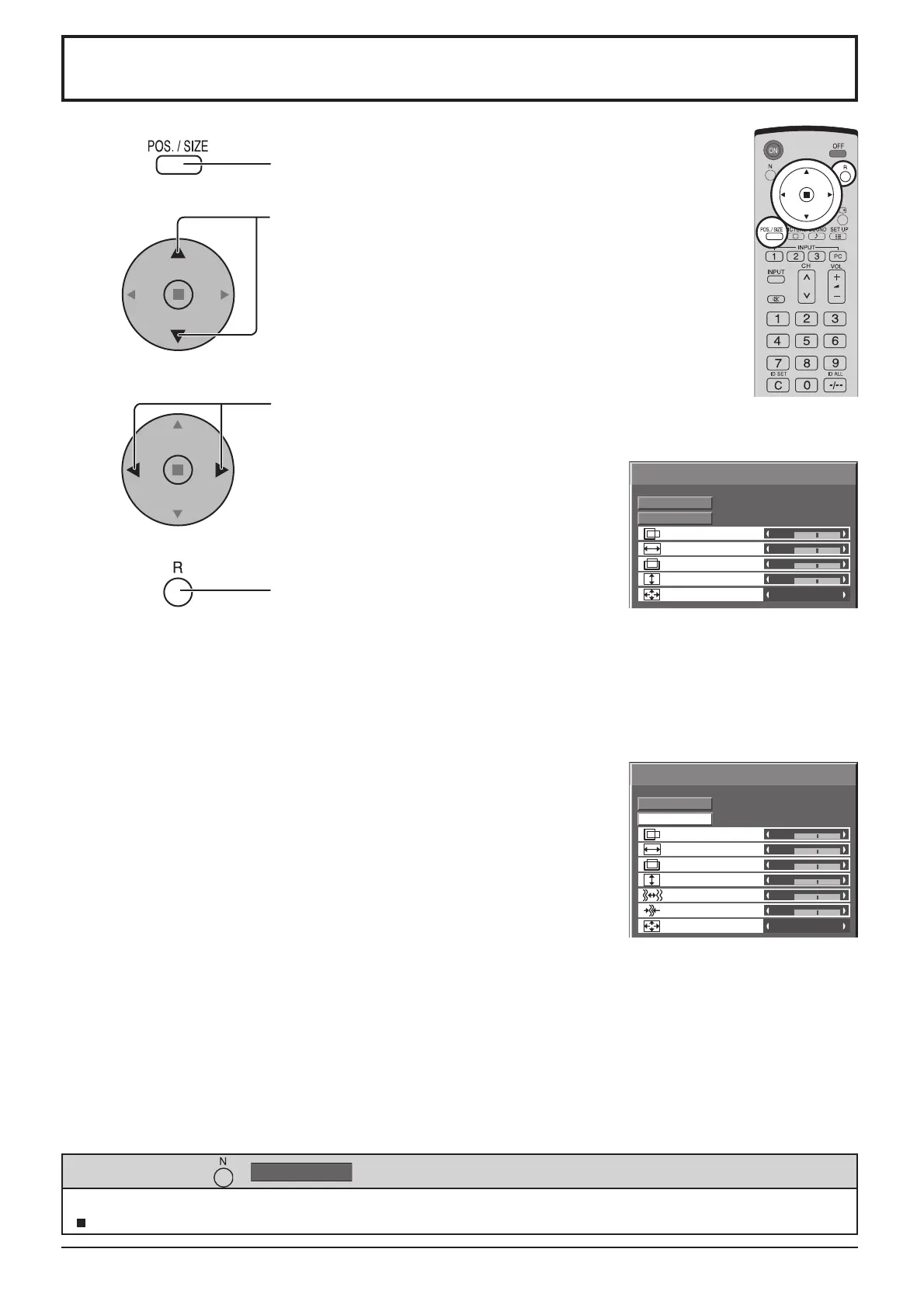 While the Pos. / Size display is active, if either the N button on the remote control is pressed at any time or the ACTION