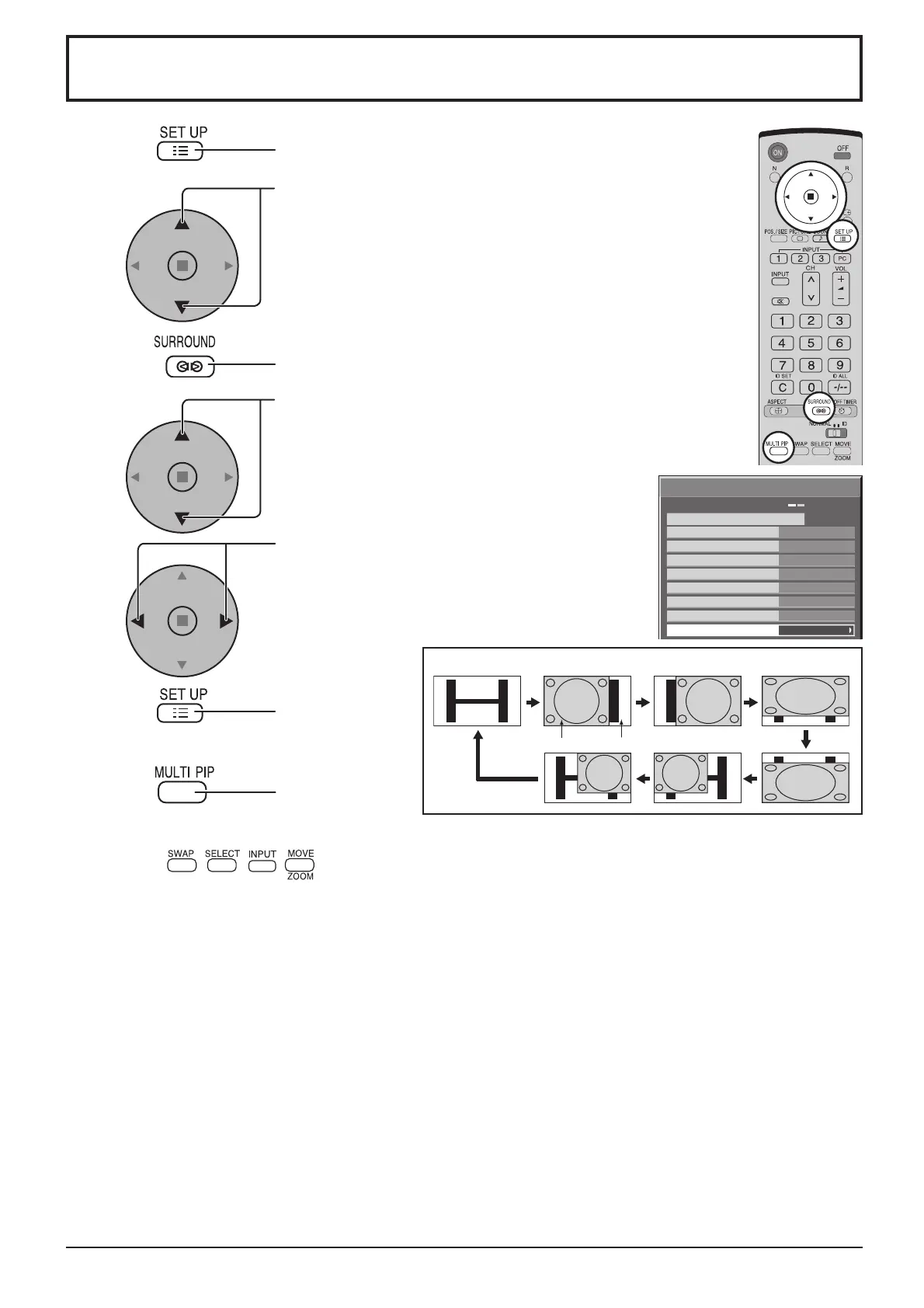 • If “INPUT lock” in Options menu is set to other than “Off”, MULTI PIP function isn’t available.