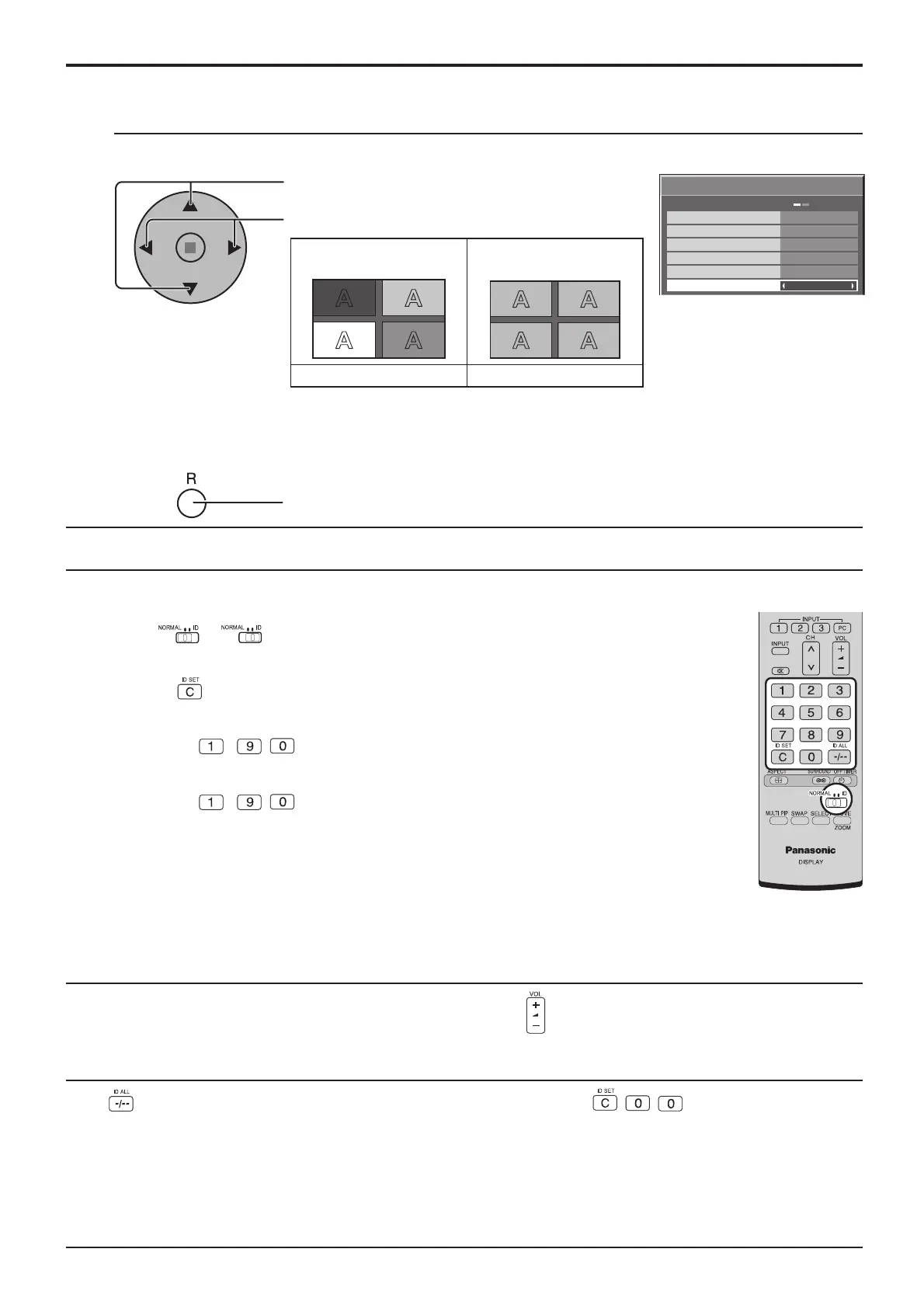 • The ID remote control cannot be used when ID select is set to anything other than 0, and the remote control ID is