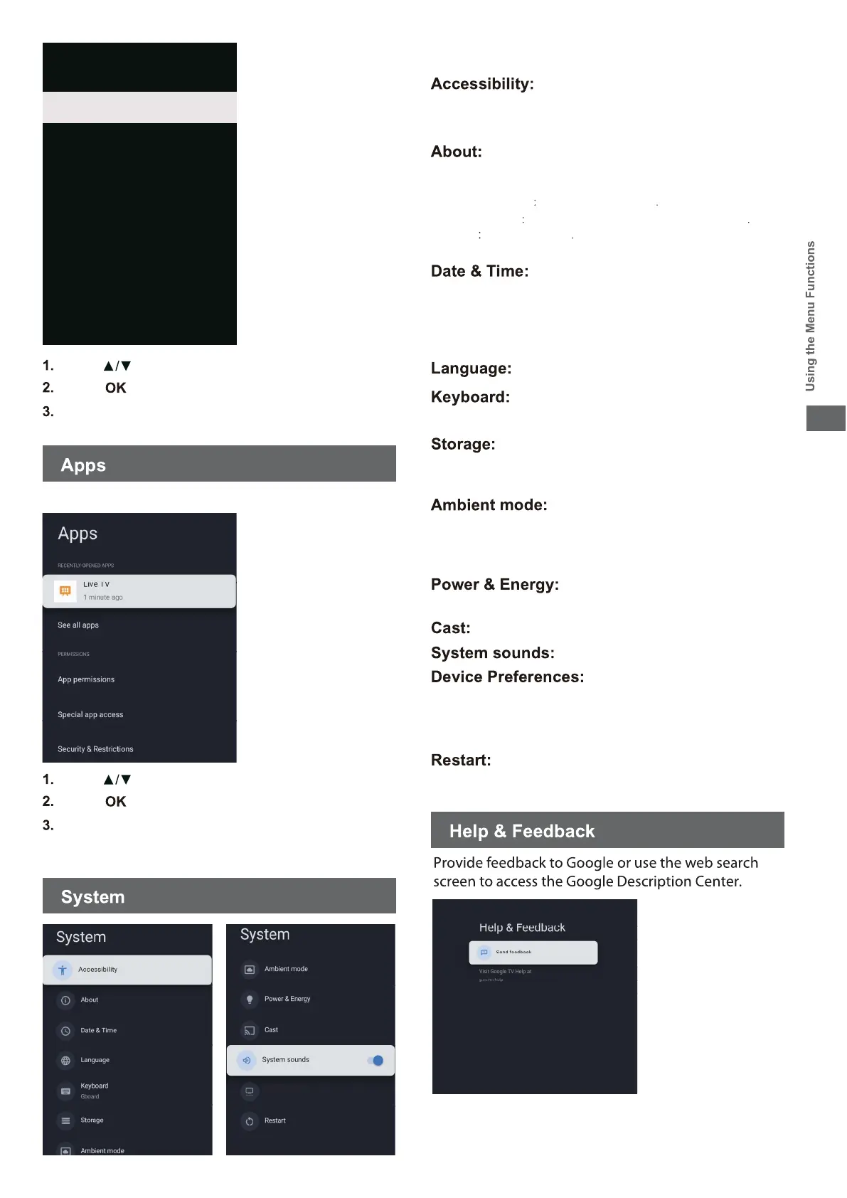 To select Sleep Timer, ldle TV Standby, Settings Exit