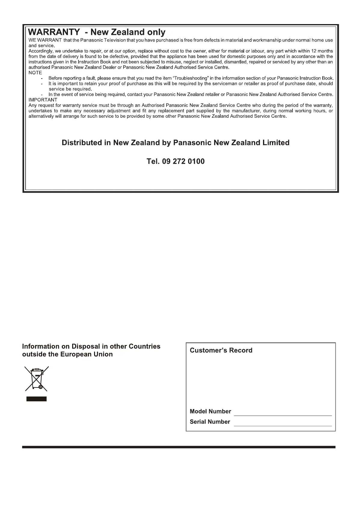 Email: Customerservice@nz.panasonic.com
