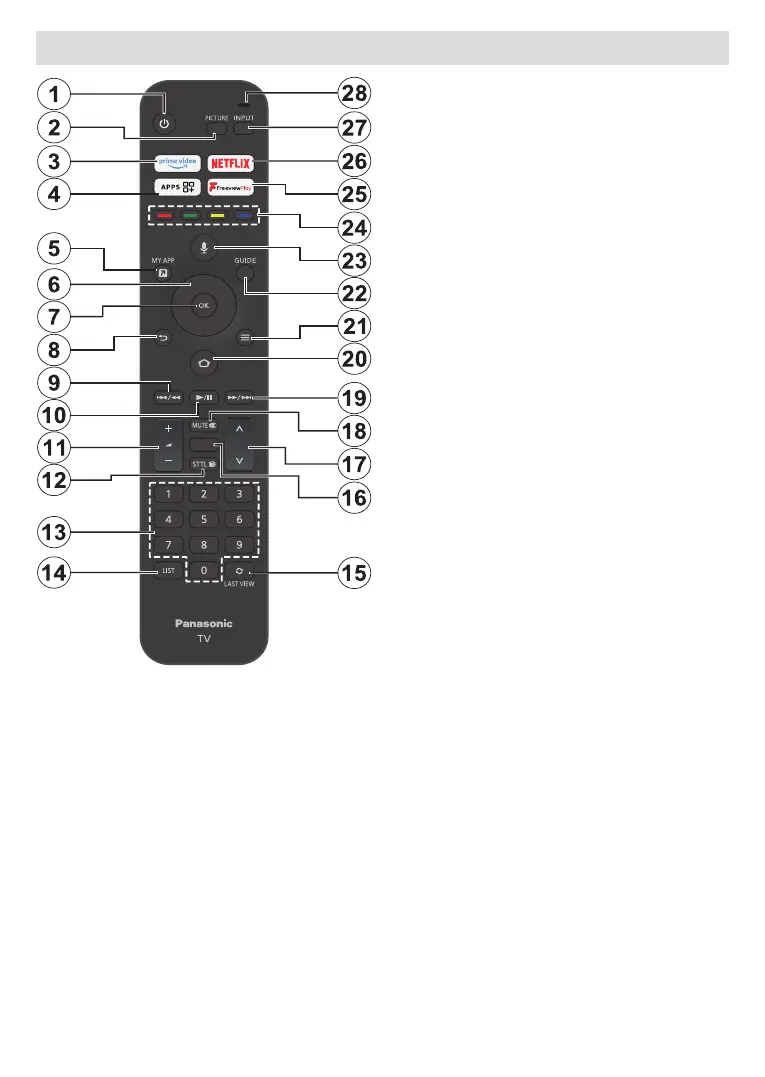 13. Numeric buttons: Switches the channel in Live TV
