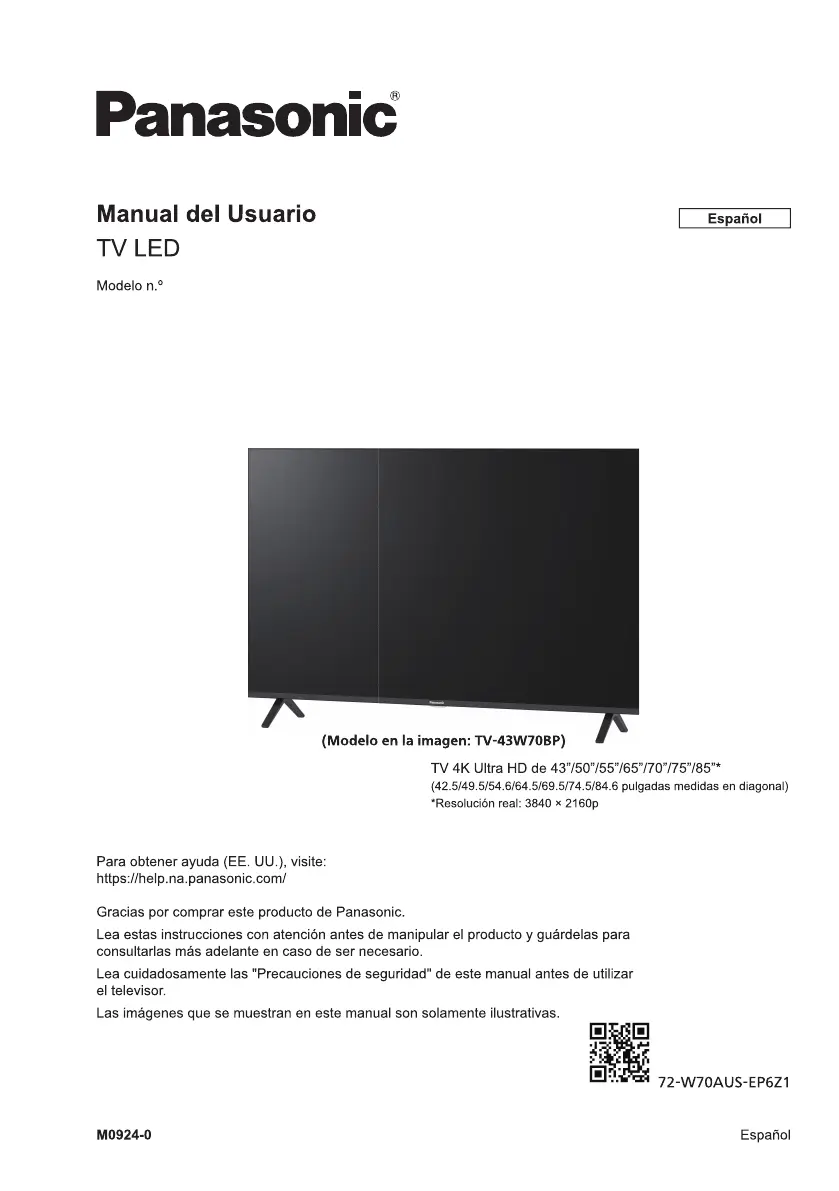 Bekijk gratis de handleiding van Panasonic TV-43W70BP, stel vragen en lees de antwoorden op veelvoorkomende problemen, of gebruik onze assistent om sneller informatie in de handleiding te vinden of uitleg te krijgen over specifieke functies.