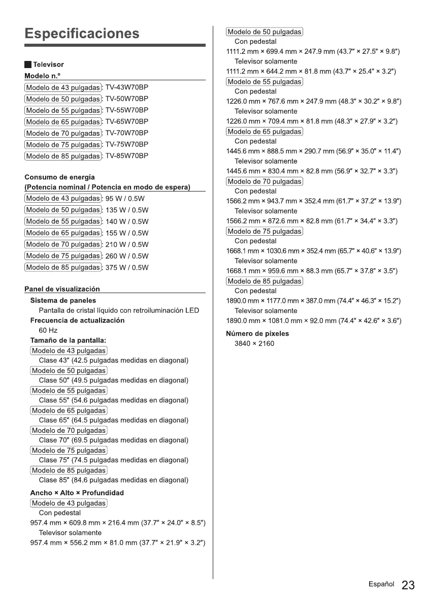 Bekijk gratis de handleiding van Panasonic TV-50W70BP, stel vragen en lees de antwoorden op veelvoorkomende problemen, of gebruik onze assistent om sneller informatie in de handleiding te vinden of uitleg te krijgen over specifieke functies.