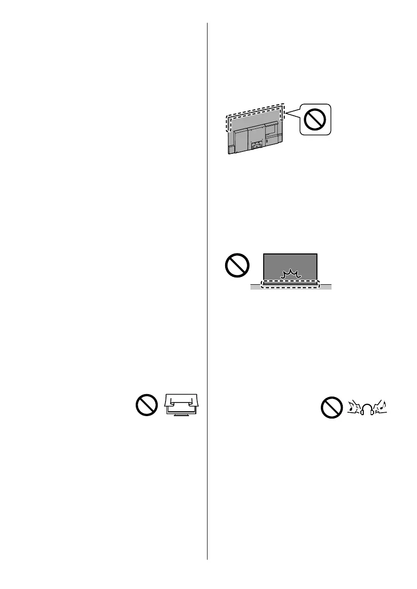 • Nie wolno tymczasowo odkładać telewizora na podłogę lub