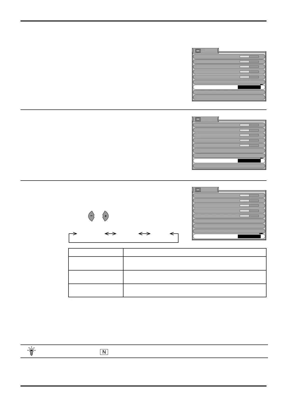 Als op de "N" toets wordt gedrukt terwijl er geen menu wordt weergegeven, zullen de oorspronkelijke gebruikerinstellingen worden
