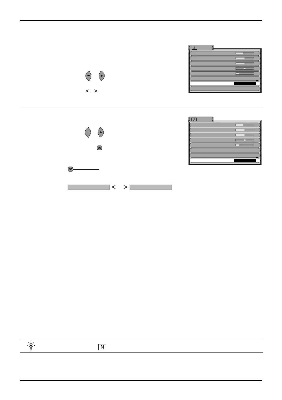 Als op de "N" toets wordt gedrukt terwijl er geen menu wordt weergegeven, zullen de oorspronkelijke gebruikerinstellingen worden