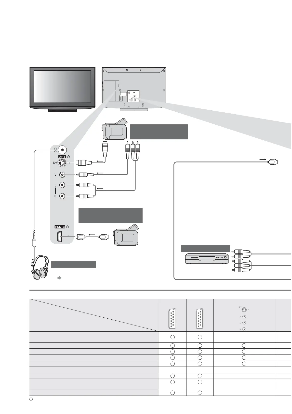 These diagrams show our recommendations for how to connect the TV to your various equipment.