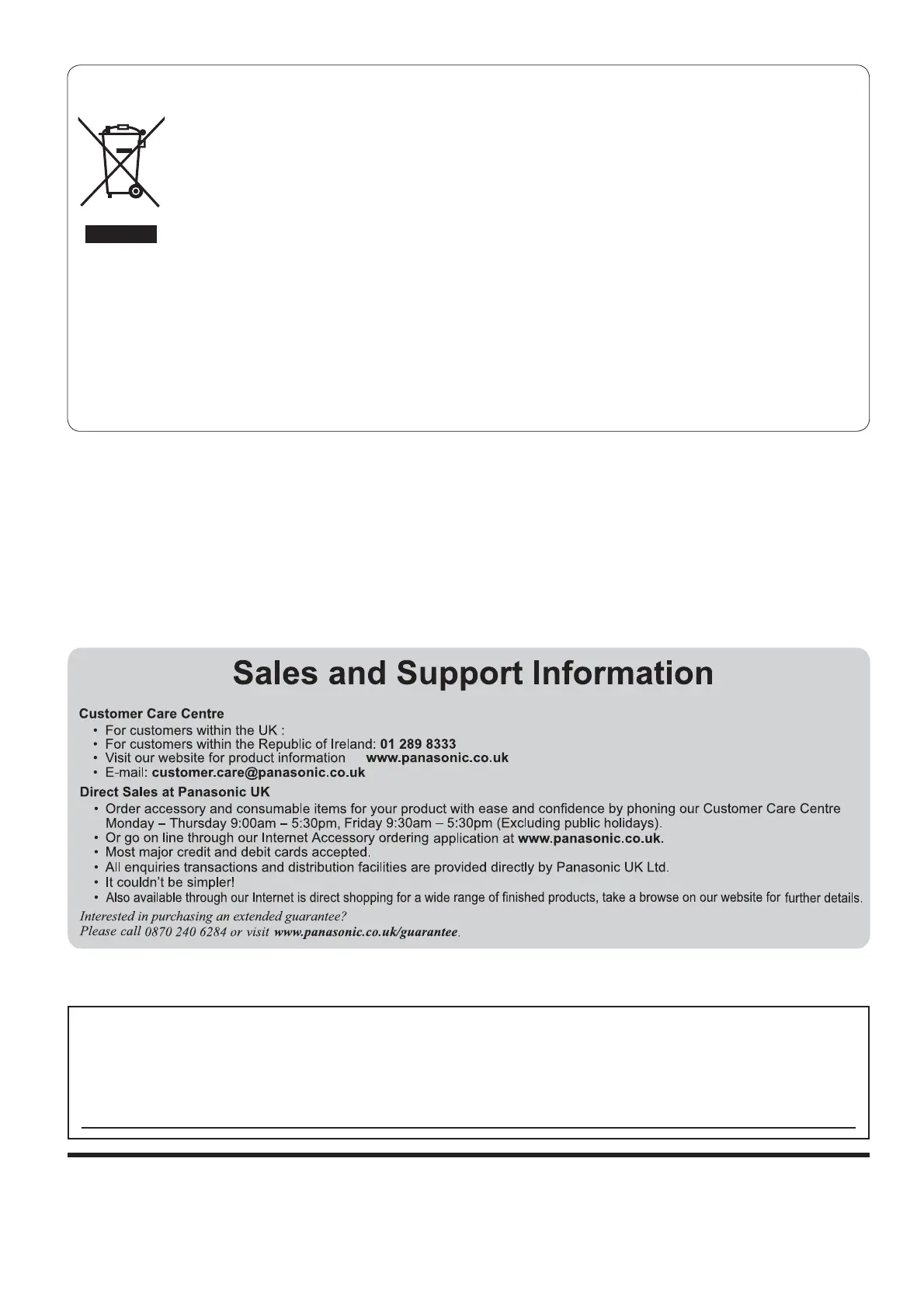 Willoughby Road, Bracknell, Berks RG12 8FP Web Site : http://www.panasonic-europe.com