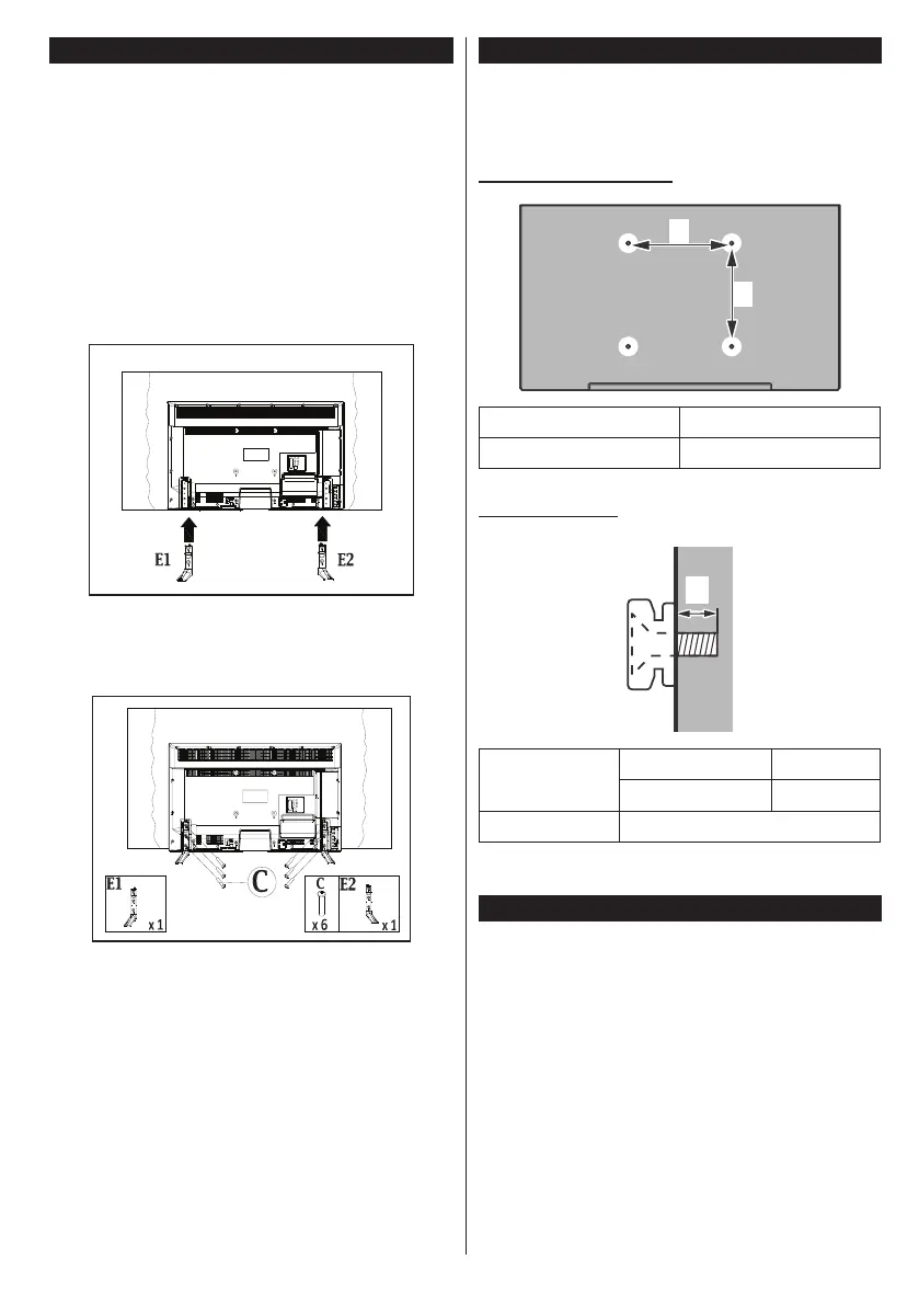 Poznámka: Šrouby pro upevnění televizoru na zavěšení na