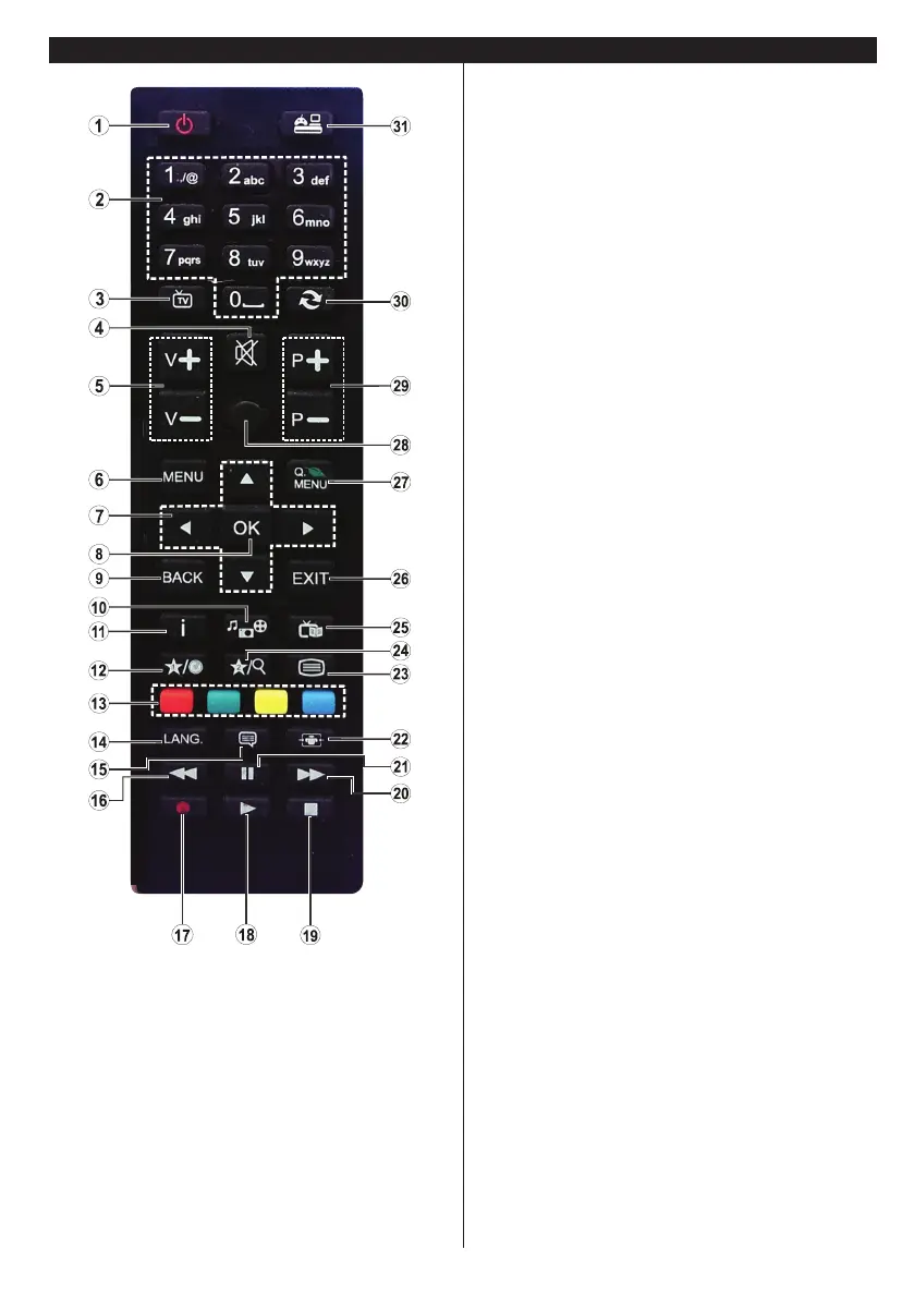 2. Číselná tlačítka: Přepne kanál, zadá číslo nebo