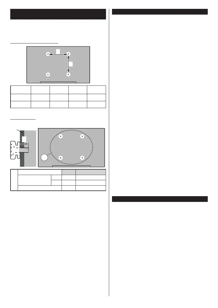 Nota: Le viti per il fissaggio della TV mediante staffa a parete