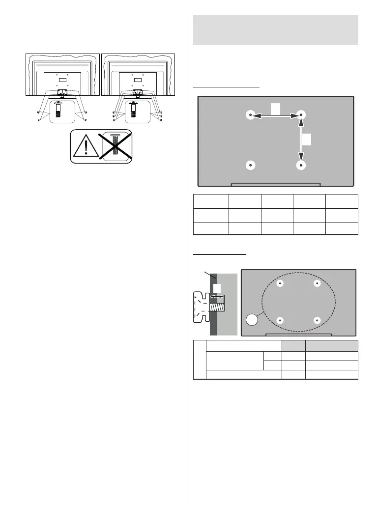 Observera: Skruvarna för att fästa TV:n på väggfästet