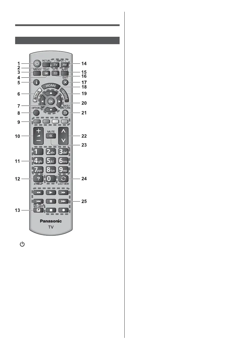 1 [ ]: Switches TV On or Off (Standby)