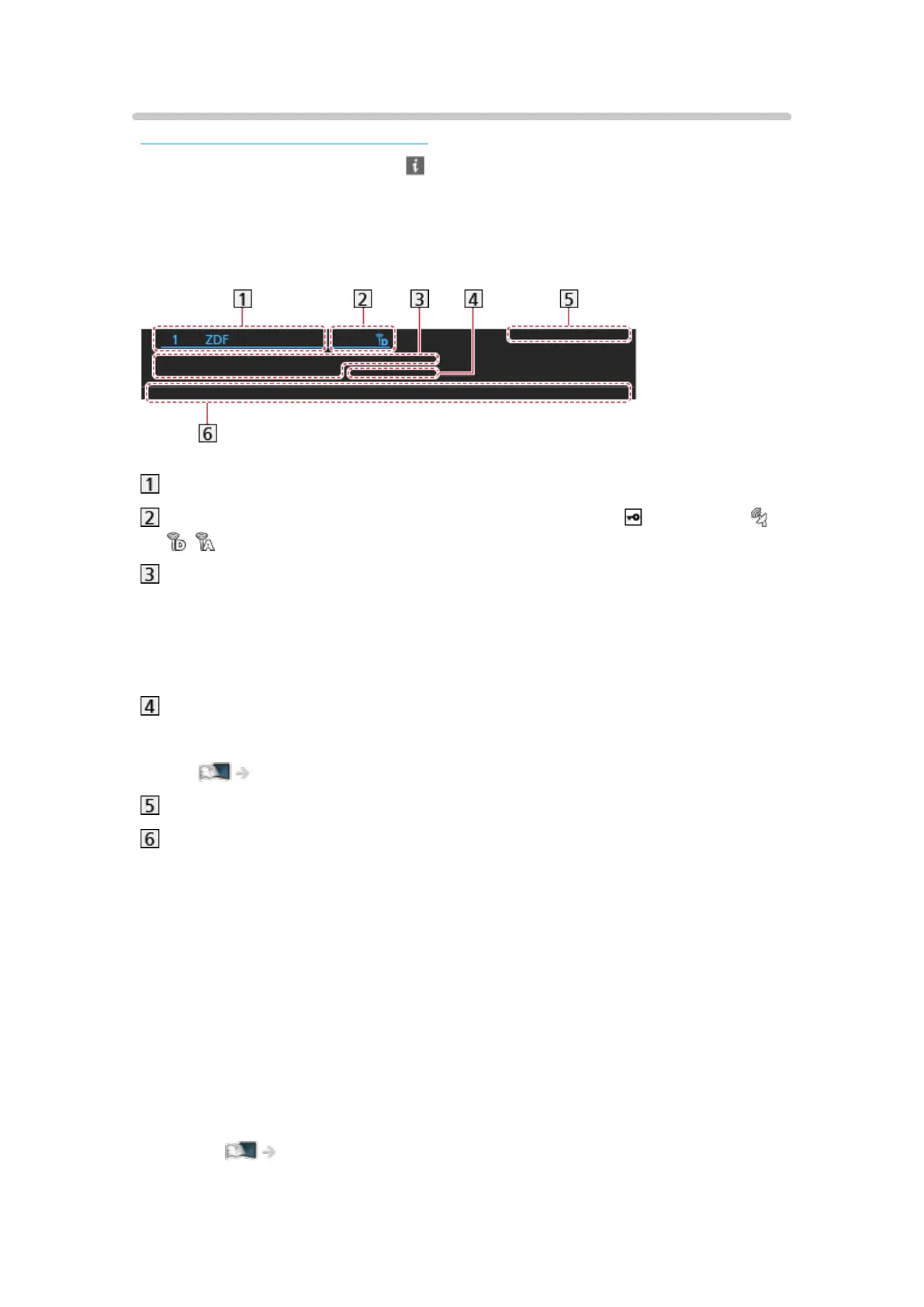 Channel type (Radio, HDTV, etc.) / Encrypted channel ( ) / TV mode ( ,