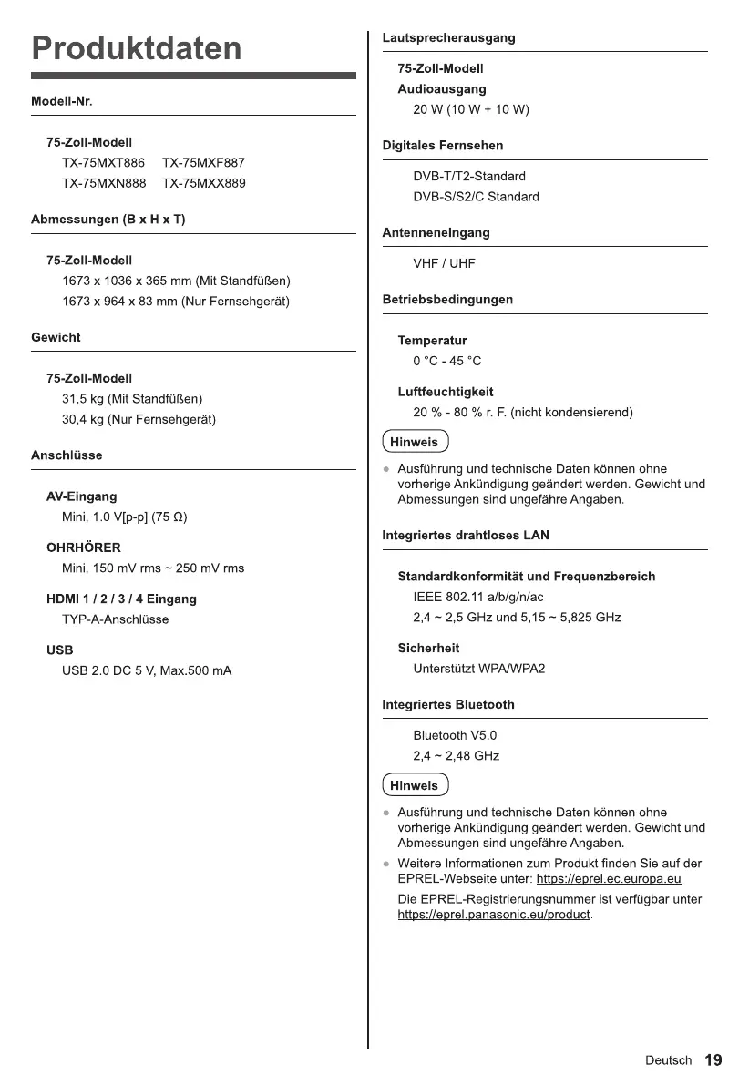 Bekijk gratis de handleiding van Panasonic TX-75MXN888, stel vragen en lees de antwoorden op veelvoorkomende problemen, of gebruik onze assistent om sneller informatie in de handleiding te vinden of uitleg te krijgen over specifieke functies.