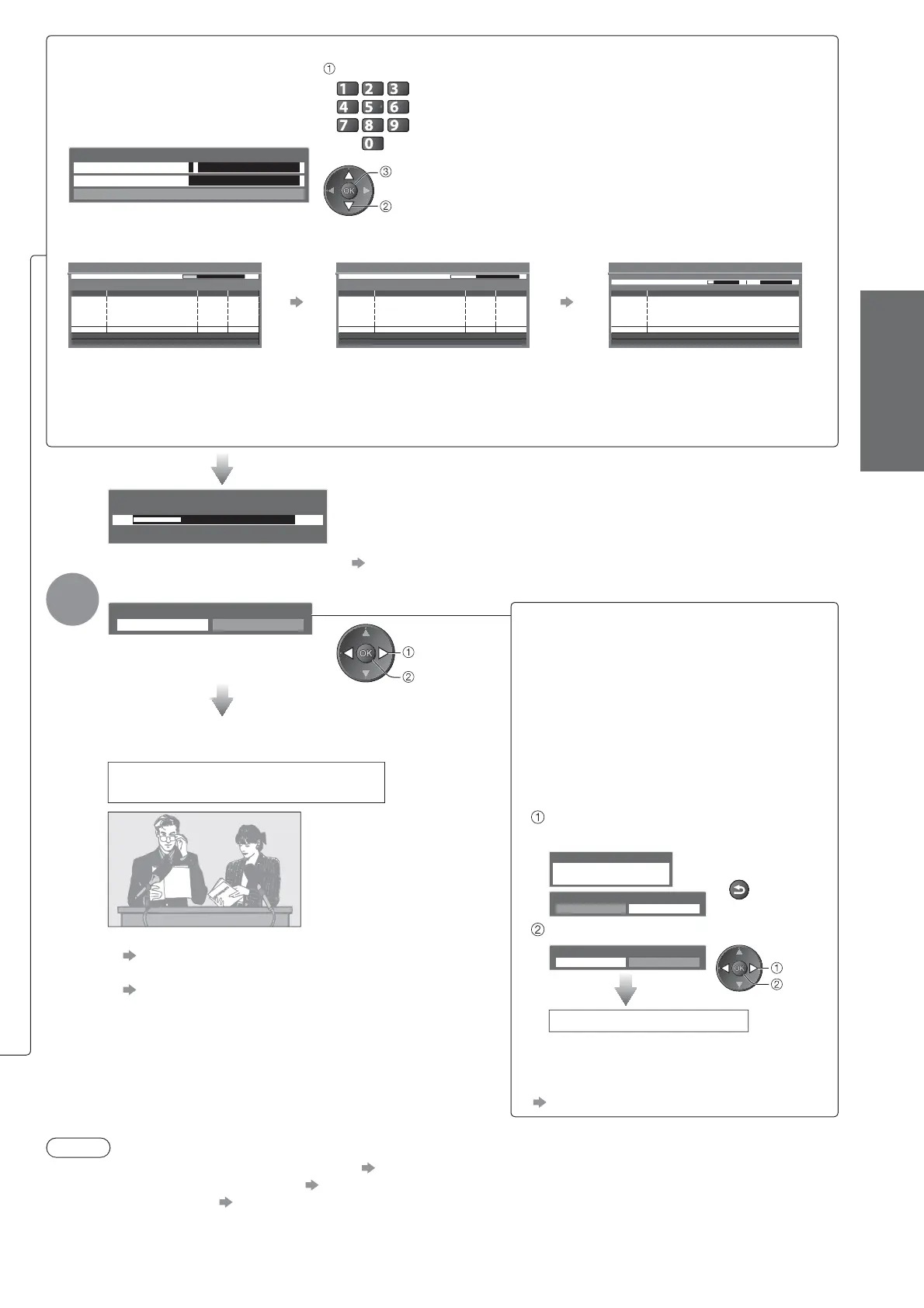 If tuning has failed or to retune all channels “Auto Setup” (p. 32 and p. 33)