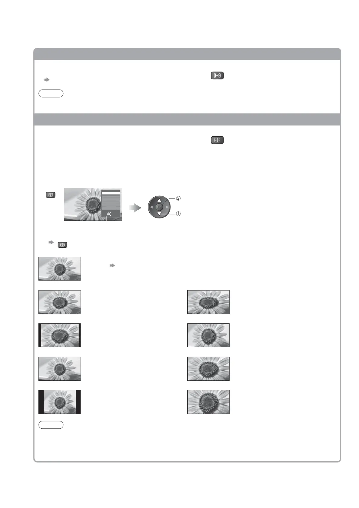 Display Aspect Selection list While the list is displayed, select the mode