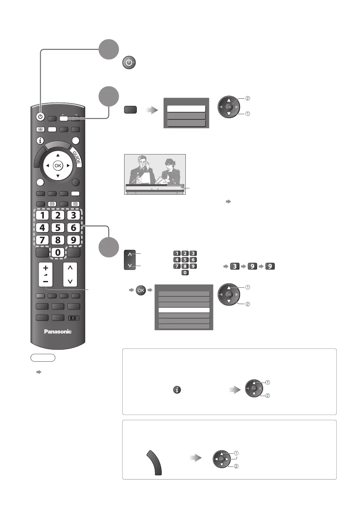 If “TV Selection” menu is not displayed, press the TV button to switch the ●