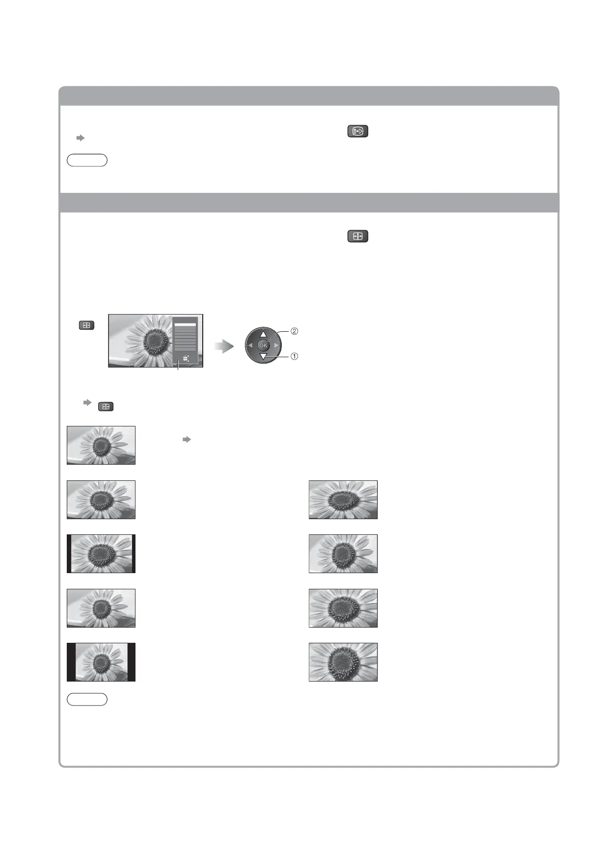 Aspect mode can be memorized separately for SD (Standard definition) and HD (High definition) signals.