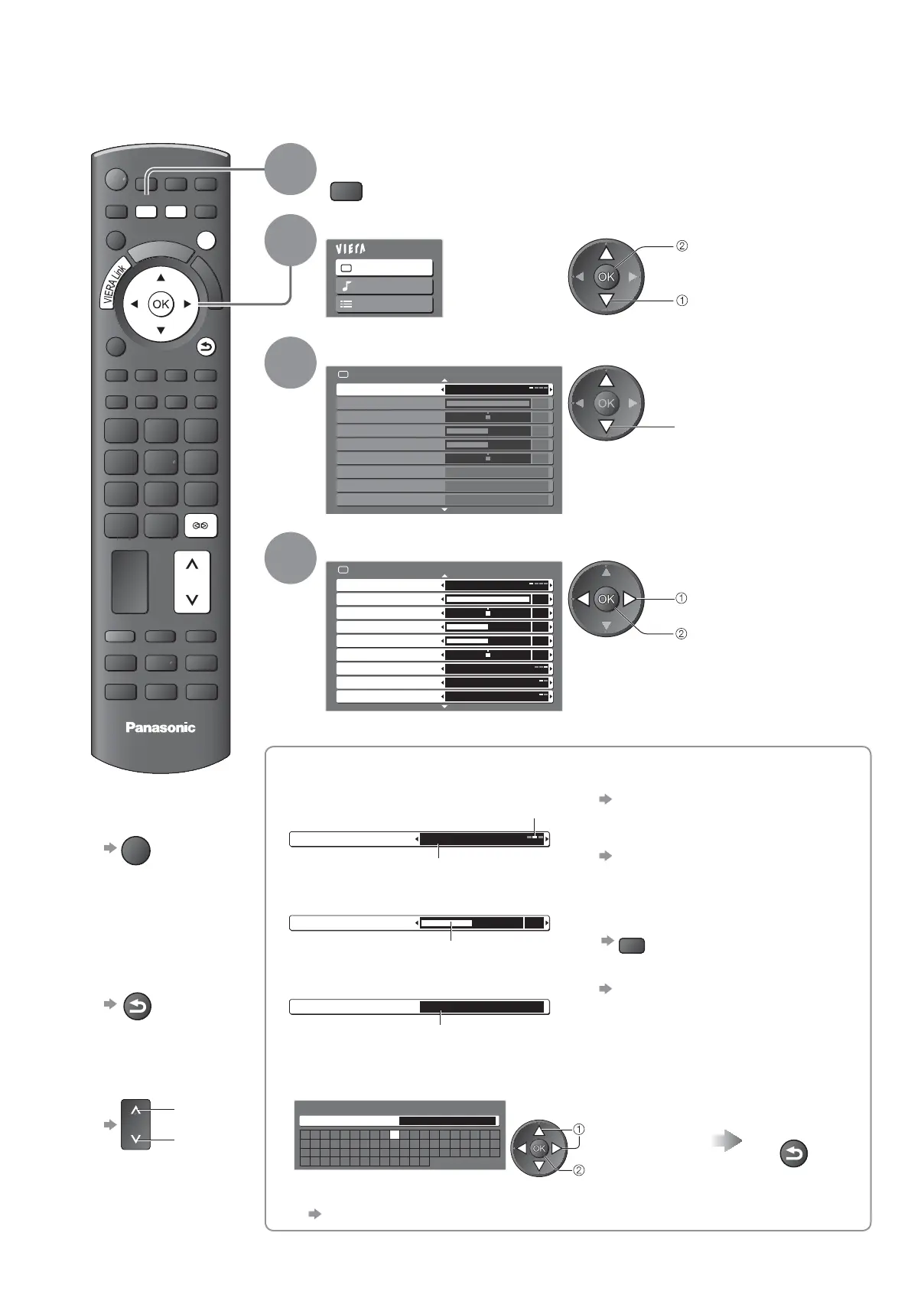 Various menus allow you to make settings for the picture, sound, and other functions.