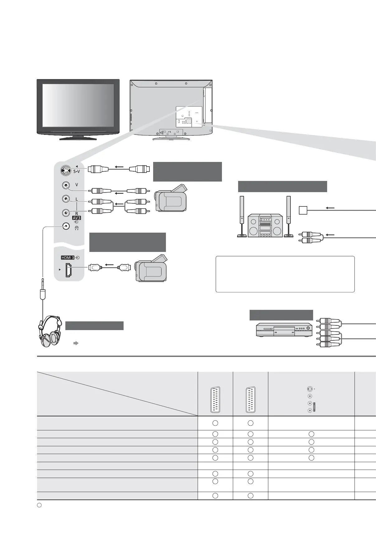 These diagrams show our recommendations for connection of your TV to various pieces of equipment.