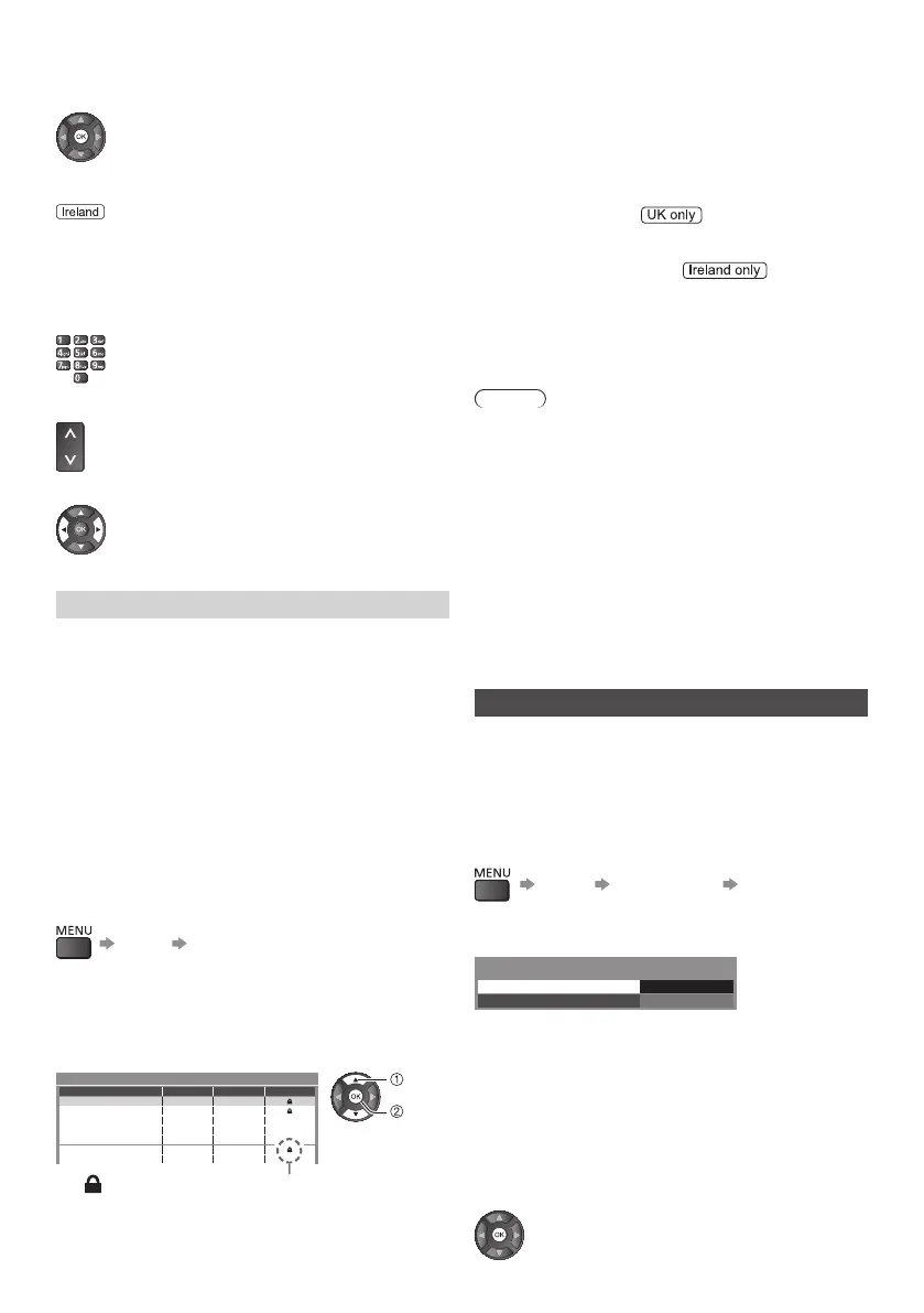 in [Favourites Edit], [Channel List], [Child Lock], etc.