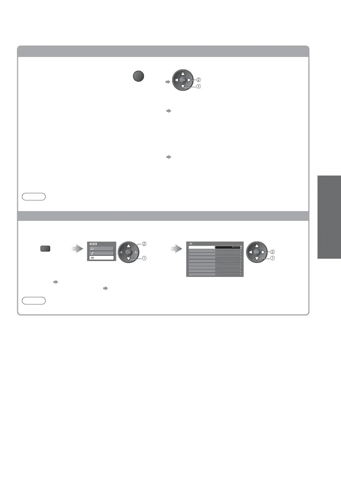 Also possible to change the settings in Menu list (p. 26 - 29).