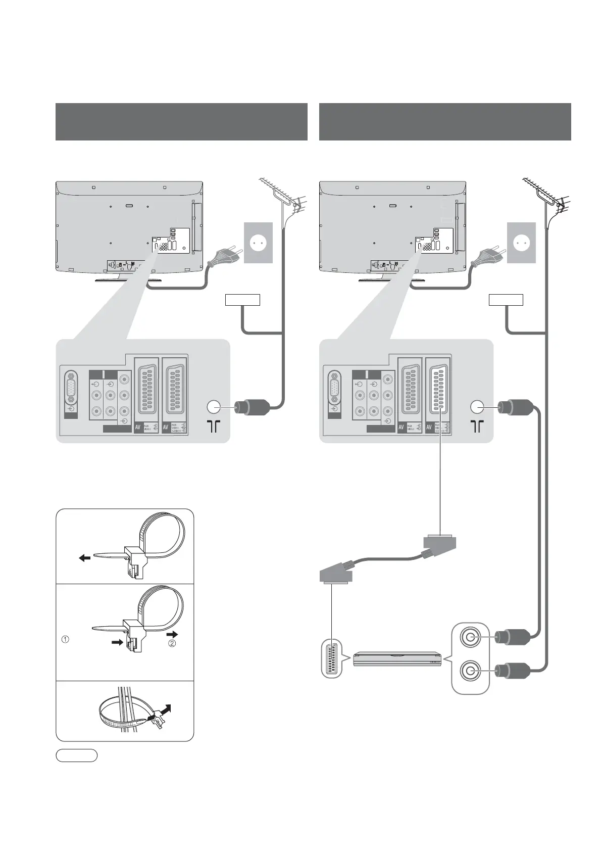 Do not bundle the RF cable and mains lead together (could cause distorted image).