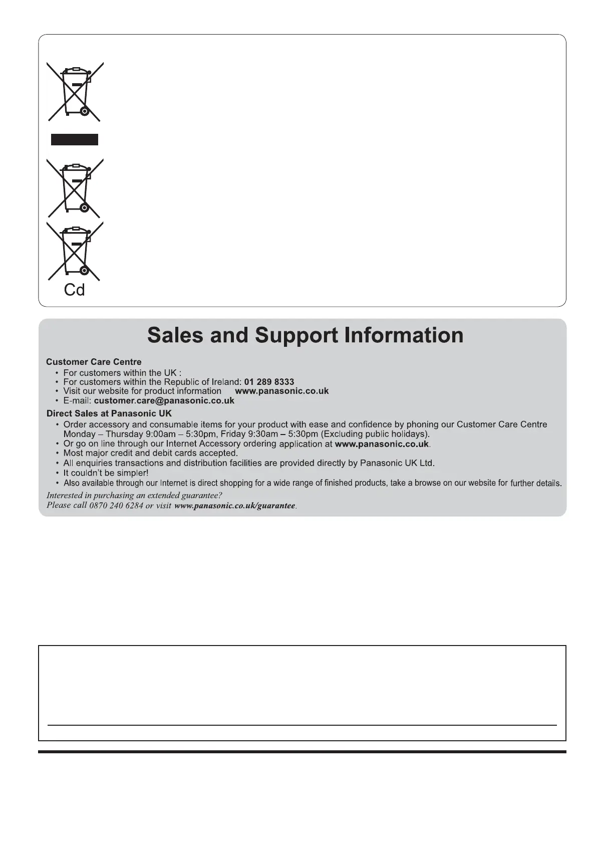 Willoughby Road, Bracknell, Berks RG12 8FP Web Site : http://www.panasonic-europe.com