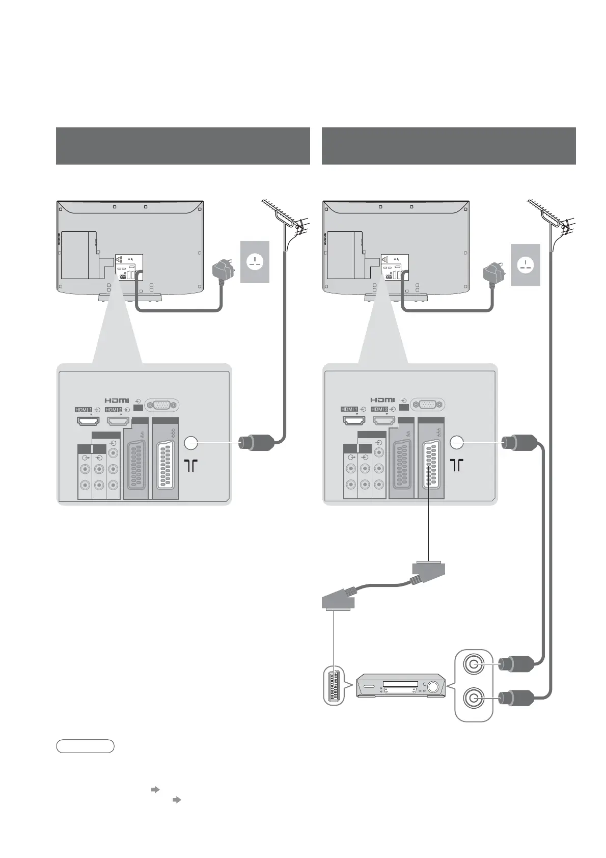 Connect to AV1 / AV2 for a DVD Recorder / VCR supporting Q-Link (p. 31).