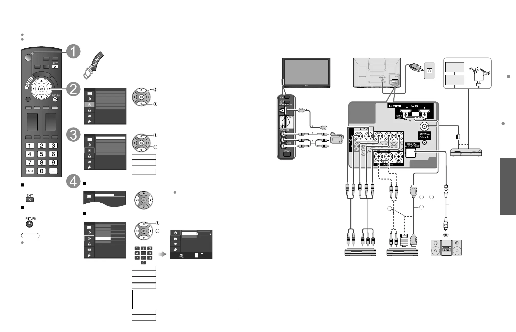 These diagrams show our recommendations or how to connect the TV unit to your various equipment.