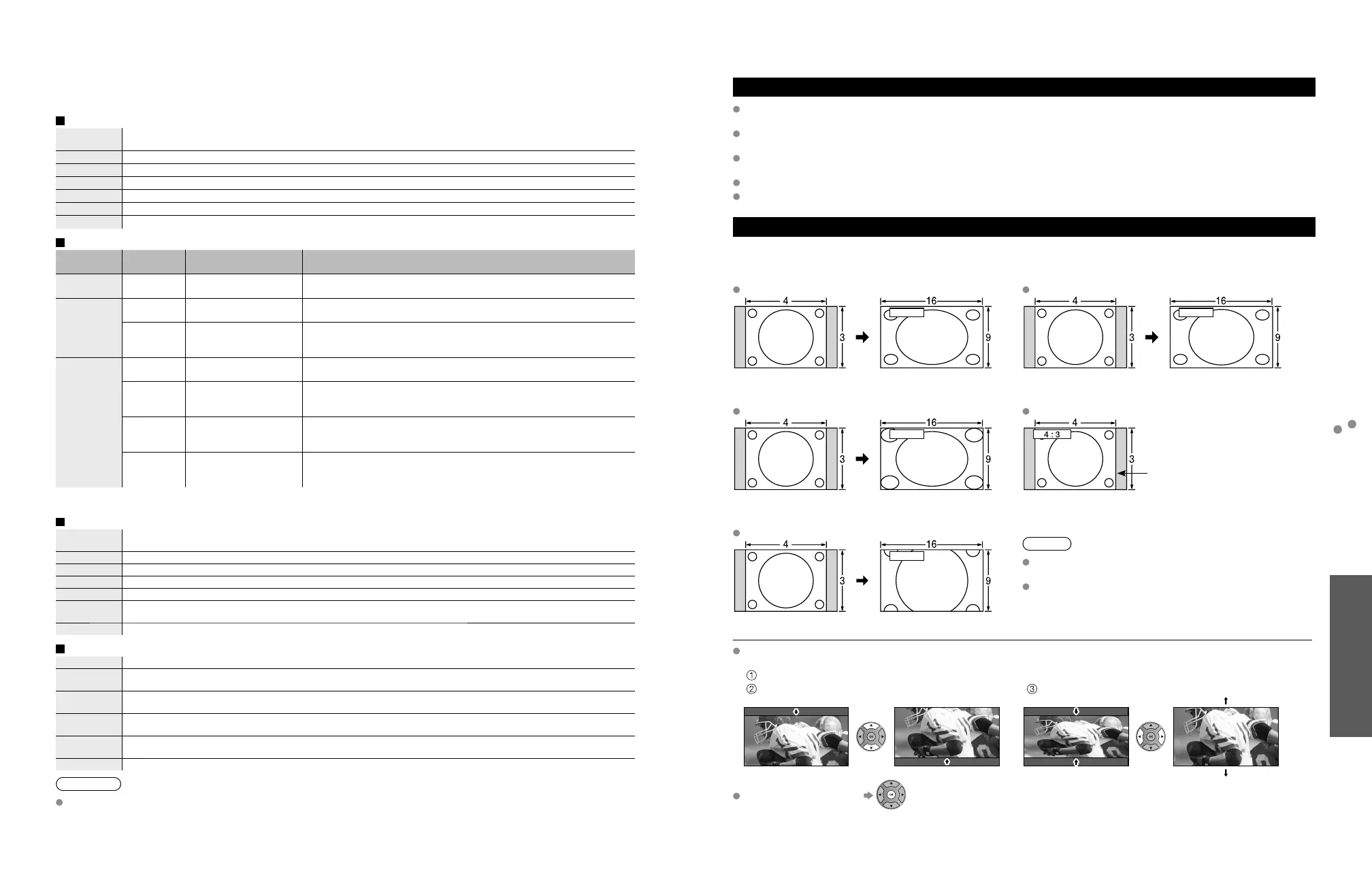 Enlarges the 4:3 image horizontally to the screen’s side
