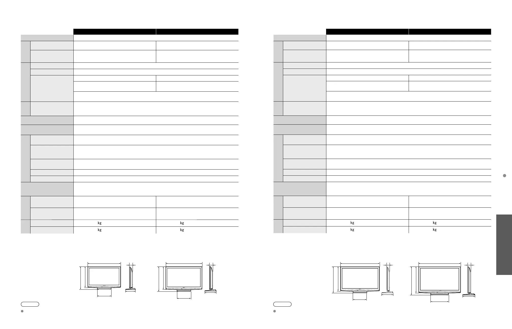 42 ” class (41.6 inches measured diagonally) 46 ” class (46.0 inches measured diagonally)